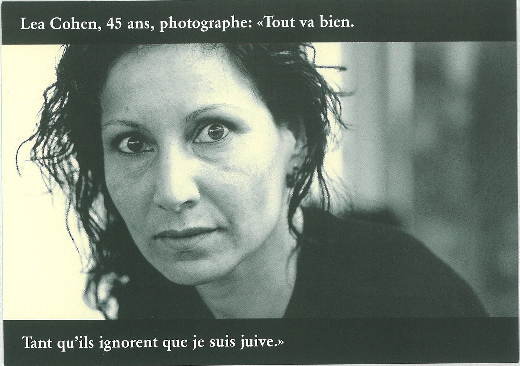 7. Lea Cohen, 45 ans, photographe: «Tout va bien. Tant qu'ils ignorent que je suis juive.»En ligne : http://www.edi.admin.ch/ekr/index.html?lang=fr Permalink : https://bibliotheque.territoires-memoire.be/pmb/opac_css/index.php?lvl=notice_di